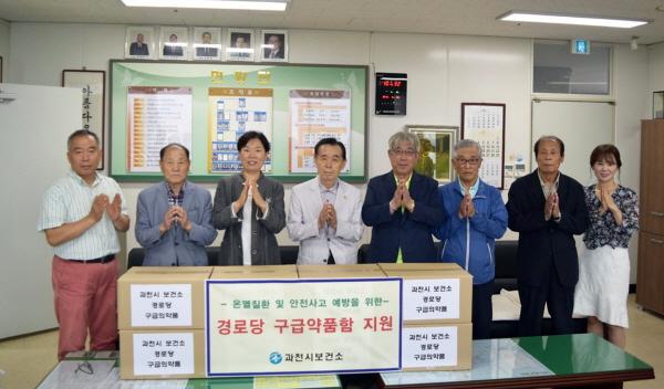 과천시보건소는 20일 과천시노인복지관에 있는 과천시노인회 사무실을 방문해 각 동 경로당 28곳에 배포할 구급약품함 28개를 전달했다고 밝혔다.