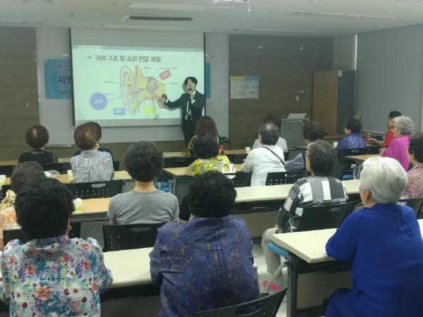 이날 교육은 노년기 청력관리에 관심이 높은 지역 어르신이 올바르게 청력을 관리할 수 있도록 난청교육을 실시하고 자신의 청력상태를 바로 알고 관리할 수 있도록 청력검사 순으로 진행됐다.. 이날 교육 및 검사 이후 청각상태가 좋지 않은 저소득 어르신을 대상으로 메디케어히어링 보청기센터에서 보청기 지원 사업을 연계 지원할 예정이다.