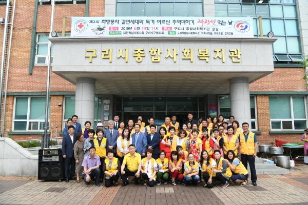 구리시에서는 지난 19일 구리종합사회복지관 광장에서 대한적십자사봉사회 구리지구협의회 주관으로 적십자 희망풍차 결연 세대와 독거 어르신 250분을 모시고 ‘추억더하기 짜장면 먹는 날’ 행사가 진행됐다.