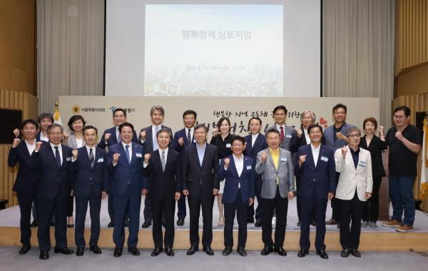 행복실현지방정부협의회와 서울특별시·서울특별시의회가 주최하고 협의회 소속 단체장과 공무원, 각계각층의 전문가 등이 참석한 이날 심포지엄에서는‘지방정부 행복정책의 제도화 방안’이라는 주제로 전문가의 발표와 참석자간 자유로운 토론을 통해 ‘행복’의 가치를 정책으로 실현하기 위한 다양한 의견을 나눴다.