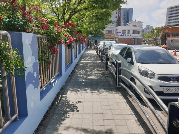 이번 디자인 개선 사업은 작년 송현초 앞에 장미테마거리를 조성한 이후 이어진 경관 사업의 일환으로, 낡고 빛바랜 담장을 밝고 경쾌한 이미지로 개선해 아이들이 좀 더 즐겁고 재미있게 등하교 할 수 있는 환경을 만들어 주기 위해 시행됐다.