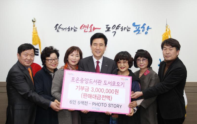 ‘포토스토리 6인 5색전’은 총 50점의 풍경사진 전시회로 3월 16일부터 4월 1일 동안 포항공대 갤러리 ‘모네’에서 열렸다. 회원들은 자연의 아름다움을 사진으로 찍어 봄을 전하고 그 판매대금을 기부함으로써 이웃들과 따뜻한 마음을 나누고자 한다며 기부 취지를 전했다. 이강덕 포항시장은 “판매대금 전액을 흔쾌히 기부해주셔서 감사하며 회원들의 뜻이 도서관을 이용하는 시민들에게도 따뜻하게 전해질 것이다”고 말했다. 한편 판매대금전액은 도서구입비로 사용될 예정이며 도서관 장서확보에 이바지할 것으로 보인다. // 심후보 기자 sky626201@naver.com