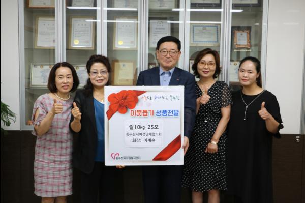동두천시자원봉사센터 소속 여성단체협의회는 21일 쌀 10kg 25포를 자원봉사센터에 기증했다.