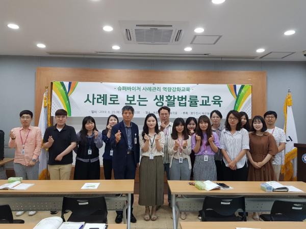 이번 교육은 동두천시 법률홈닥터 김혜연 변호사를 초빙해 ‘사례로 보는 생활법률 교육’을 주제로, 사회복지 현장에서 접하는 채권·채무, 상속, 이혼 등 법률서비스에 대한 이해와 실제사례를 중심으로 자문을 구하는 방식으로 2시간 동안 진행되었으며, 사례관리 담당실무자들의 큰 호응을 얻었다.