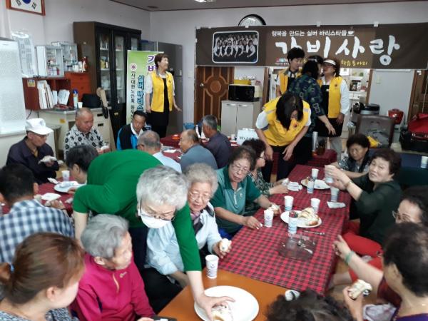 동두천시 보산동 행정복지센터에서는 지난 20일 동두천시 봉사단체 ‘가비사랑’과 연계해 관내 싸리말경로당 어르신 50여 분에게 샌드위치와 커피를 대접했다고 전했다.