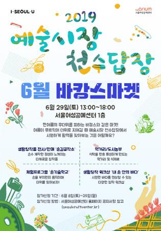 ‘2019 예술시장 천수답장 : 6월 바캉스 마켓’은 오는 29일 오후 1시부터 오후 6시 서울여성공예센터 1층 실내공간에서 진행된다. 서울여성공예센터는 지하철 6,7호선 태릉입구역에서 도보로 5분 거리에 있어 대중교통으로도 찾아오기 손쉬운 공간이다.
