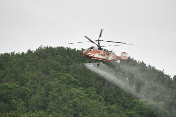 KA-32T 대형헬기 1대와 조종사 4명이 참여해 항공방제 지역특성에 따른 헬기 기동방법과 비행절차를 점검했다.