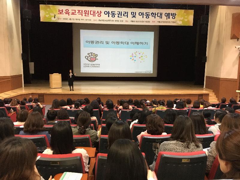 거제시 가정어린이집연합회(회장 하나어린이집 정신혜 원장)는 지난 7일, 거제시 청소년수련관 대강당에서 어린이집 내 아동학대 예방 및 신고활성화를 위해 경남 아동보호전문기관 박미경 관장을 강사로 초빙하여 어린이집 원장, 보육교사 등 300여 명을 대상으로 아동권리 및 아동학대 예방교육을 개최했다.