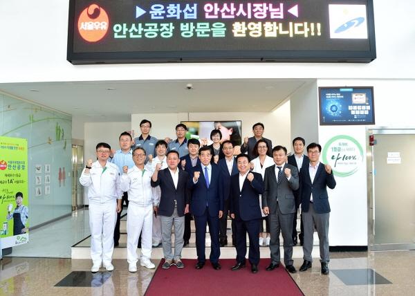 지난 21일 진행된 기업방문에는 윤화섭 안산시장과 문진섭 서울우유협동조합 제20대 조합장, 윤진옥 안산공장장, 성종호 노조위원장, 안희상 안산노조부위원장 등 노사대표자가 참석해 기업발전에 대해 논의하는 시간을 가졌다.