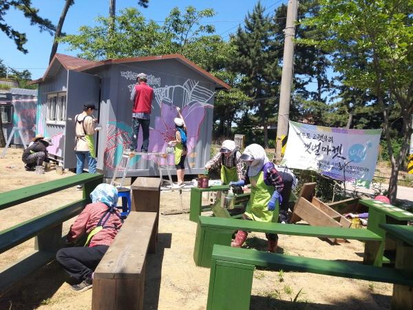 민간위탁사업으로 진행되는 이 사업은 지난 23일 대남초 어린이들과 마을 주민 30여 명이 방치되어 있는 노후된 안내시설 컨테이너에 서울 동대문구 ‘회기동 안녕마을벽화’로 유명한 ‘눈빛봉사단’의 디자인으로 페인트 도색 등 주변경관을 아름답고 깨끗하게 리모델링을 실시했다.