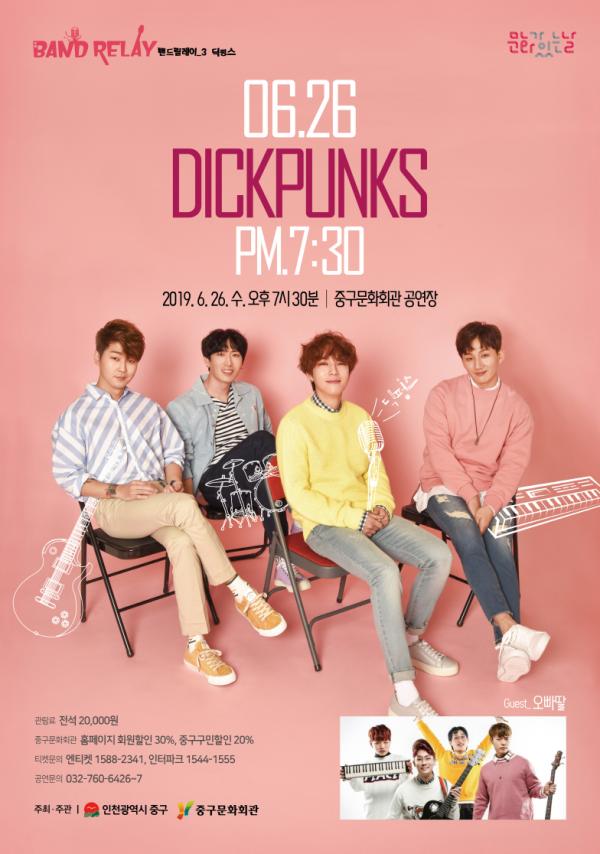 인천 중구은 오는 26일 중구문화회관에서 2019년 6월 문화가 있는 날을 맞아 ‘밴드릴레이 Ⅲ - 딕펑스’ 공연을 무대에 올린다.