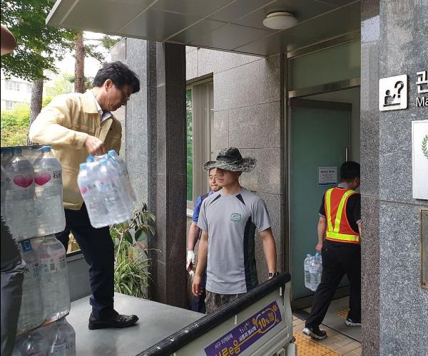 지난 18일 환경부 조사결과 발표 시 공촌정수장 물을 식수로 사용하기까지에는 시간이 필요하다고 함에 따라, 이 청장은 예비비를 투입해 구입한 생수와 기관과 단체에서 지원받은 생수를 직원 및 자원봉사자들과 함께 배부하며 주민피해를 최소화하기 위해 연일 매진하고 있다.