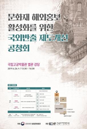 문화재청은 오는 26일 오후 1시 30분 서울 국립고궁박물관 별관 강당에서 ‘문화재 해외홍보 활성화를 위한 국외반출 제도개선 공청회’를 개최한다.