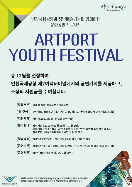 인천국제공항공사가 재능있는 청년예술가를 지원하기 위해 진행하고 있는 '인천공항 Artport Youth Festival' 공모전에 신청접수 1주일만에 실력있는 청년예술가 20여개 이상의 팀이 지원하는 모습을 보이며 참여열기가 뜨겁게 달아오르고 있다.