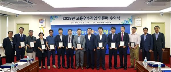 제주특별자치도는 24일 오전 도청 삼다홀에서 ‘2019년도 고용우수기업’으로 선정된 11개사를 대상으로 고용우수기업 인증패를 수여했다고 밝혔다.