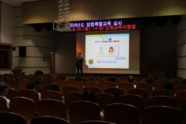 강화교육지원청은 지난 24일 강화교육지원청 마니산홀에서 전 직원과 관내 각급 학교 청탁방지담당관 및 행정실장 90여명을 대상으로 청렴특별교육을 실시했다.