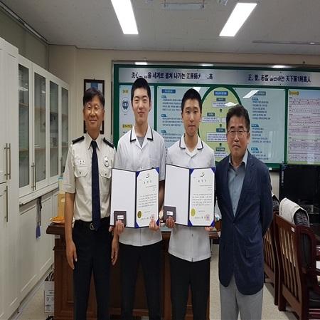 표창을 수여에는 고창호 도 소방본부 방호구조과장과 이우영 학교장이 참여해 두 학생을 격려했다