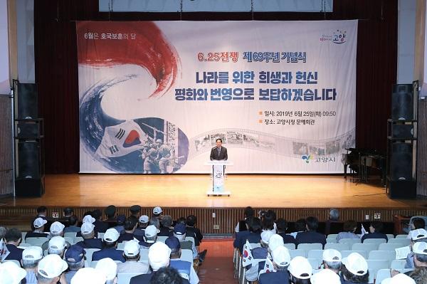 기념식은 6.25전쟁 제69주년 동영상 상영으로 시작해 모범보훈 대상자 표창장 수여, 고양시장과 고양시의장에 감사패 전달, 6.25참전유공자회 고양시지회 윤 우록 회장의 대회사, 이 재준 시장의 기념사와 고양시립합창단의 합창 및 6.25노래 제창 순으로 진행됐다..