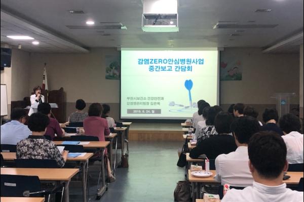 부천시보건소는 지난 24일 보건소 대강당에서 ‘감염제로 안심병원 사업’ 중간보고 간담회를 열고 감염관리 기본교육을 실시했다.