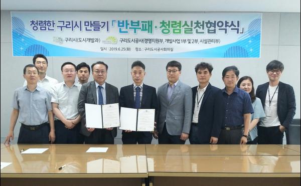구리시 도시개발과는 지난 25일 오전 10시 구리도시공사 경영지원부, 개발사업1부 및 2부, 시설관리부 부서장과 청렴 문화 확산을 위한 ‘반부패·청렴 실천 협약’을 체결했다.