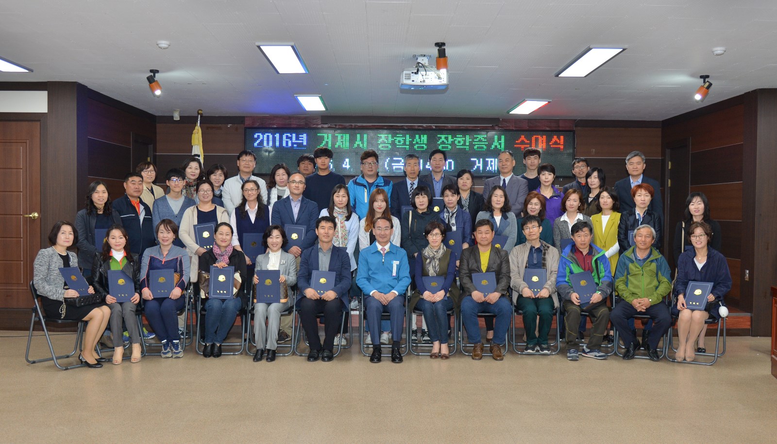 거제시(시장 권민호)는 지난 15일 오후2시, 거제시농업기술센터 대회의실에서 2016년 거제시 장학생으로 선발된 학생들과 학부모들이 참석한 가운데 장학증서를 전달하는 수여식을 가졌다.