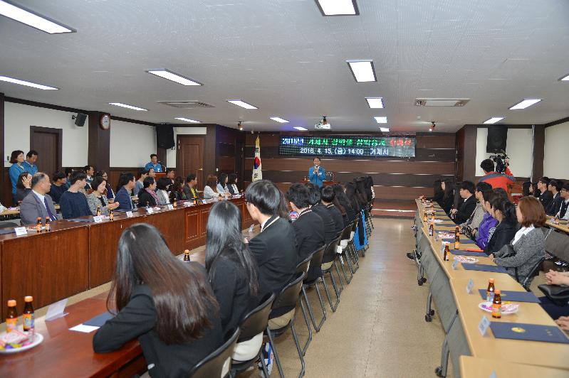올해 거제시 장학생으로 선발된 인원은 고등학생 60명, 대학입학생 27명, 대학재학생 18명으로 총 105명이며, 고등학생 50만원, 대학생 200만원이 각각 지급된다.