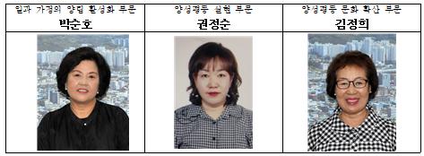 제16회 동두천시 양성평등상에 박순호, 권정순, 김정희 3명 선정