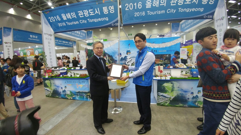 통영시는 올해의 관광도시 홍보관 내에 멸치, 멍게, 장어 등 통영대표 수산물 및 꿀빵, 마카롱 등 먹거리와 동백오일, 누비, 관광기념품 등 다양한 상품을 전시함으로써 방문객들의 시선을 사로잡았으며, 꿀빵과 통카롱 시식회, 퀴즈 및 짚신날리기 게임 등 흥미로운 이벤트도 자체 진행하여 방문객들에게 큰 호평을 받았다.