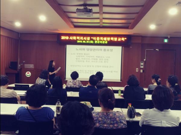 고온 다습한 여름철, 음식재료의 오염뿐만 아니라 칼이나 도마, 조리하는 사람의 손에 의한 감염으로도 쉽게 식중독이 발생할 수 있어, 면역력이 약한 노인들이 많이 이용하는 사회복지시설의 급식 관리사 및 조리종사자를 대상으로 교육을 실시함으로써 식중독 발생을 사전에 예방하고자 마련됐다.
