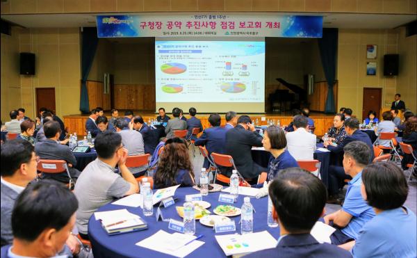 이번 보고회는 공약이행평가단원과 간부공무원이 민선 7기 1년의 추진성과를 점검하고 향후 계획을 보고하는 형식으로 진행, 특히 민선7기 출범과 함께 공개모집을 통해 주민으로 구성된 공약이행평가단의 공약추진의 성과 및 추진계획 의견을 수렴하는데 중점을 뒀다.