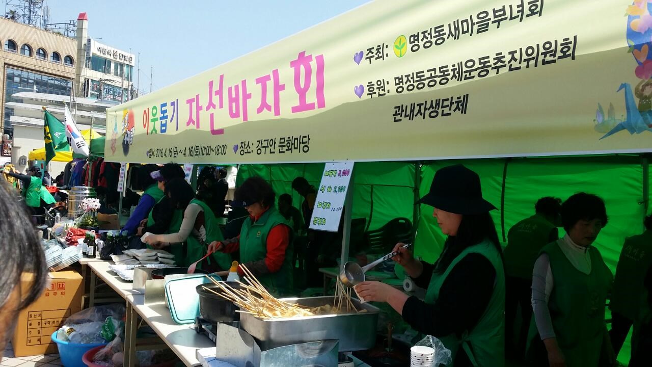 지난 15일(금) ~ 16일(토) 이틀간 강구안 문화마당에서 통영시 명정동새마을부녀회가 주관하는 자선바자회가 개최되었다. 불우이웃돕기 자선바자회 소식이 널리 전해지면서 문화마당에는 사람들로 북적였다. 명정동 자생단체 회원들뿐만 아니라 각 읍면동 새마을단체장 및 회원, 시의원, 시청직원, 시민 등 좋은 뜻에 동참하고자 하는 분들이 많이 찾아 주었다.