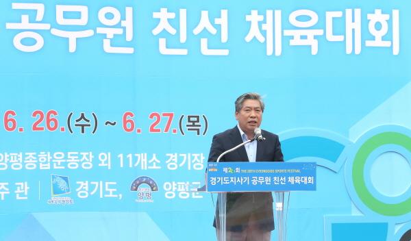 송한준 경기도의회 의장이 26일 오전 물맑은 양평종합운동장에서 열린 ‘제20회 도지사기 공무원 친선 체육대회’ 개회식에 참석해 공무원 선수단을 격려했다.