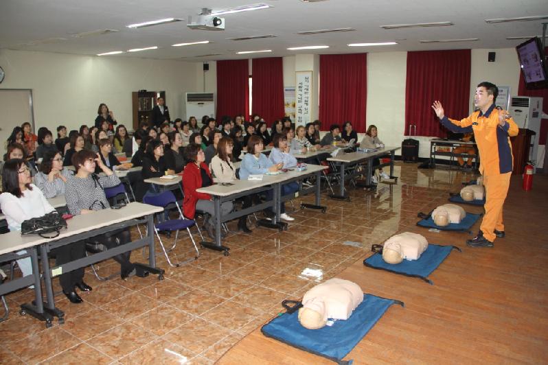 사회복지법인 및 사회복지시설의 연중 안전교육 및 심폐소생술 교육 의무에 따른 거제시민간어린이집 연합회 요청에 의해 실시된 금번 교육에는 거제시 어린이집 원장 80여명이 소방안전교육을 받았다.
