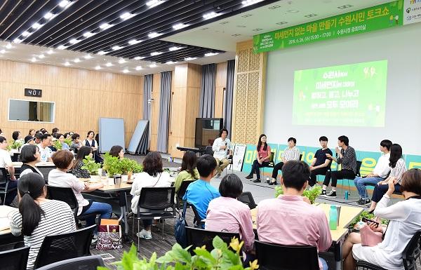수원시가 지난 26일 시청 중회의실에서 연 ‘미세먼지 없는 마을 만들기 수원시민 토크쇼’에 참가한 시민들은 미세먼지에 대응하기 위한 다양한 의견을 제시했다.