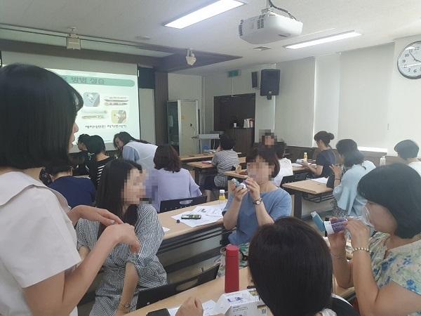 1부는 경기도 아토피·천식 교육정보센터 노수정 전문 강사의 천식 및 아나필락시스 응급상황 이론교육과 응급약물 사용법의 개인별 실습으로 학교에서 증상 발생 시 신속하고 올바른 대처에 대한 강의가, 2부는 군 담당자의 아토피·천식 안심학교 운영 및 보건소 아토피·천식 예방사업 참여 안내가 이어졌다.