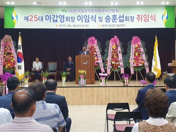 한국농촌지도자 파주시연합회장 제25대 이·취임식이 농업기술센터 농업과학교육관 대강당에서 최종환 파주시장을 비롯한 내빈과 유관기관 단체장 및 농촌지도자 회원 등 150여명이 모인 가운데 개최됐다.
