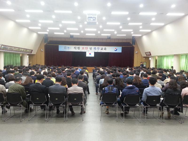 통영시(시장 김동진)에서는 정부서울청사 외부인 침입과 관련하여 현재 대두되고 있는 청사방호 및 보안 문제 등에 대한 대책의 일환으로 지난 14일(목), 통영시 전 직원을 대상으로 시청 강당에서 두 차례에 걸쳐 ‘직원 보안 및 복무교육’을 실시했다.