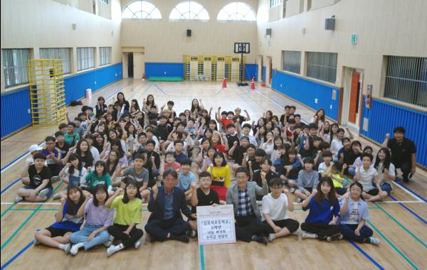 김포시종합사회복지관은 지난 19일 김포서초등학교 6학년 학생회장 조은혁 학생을 포함한 6학년 학생 전원이 함께한 자리에서 나눔바자회 수익금 전달식을 가졌다.