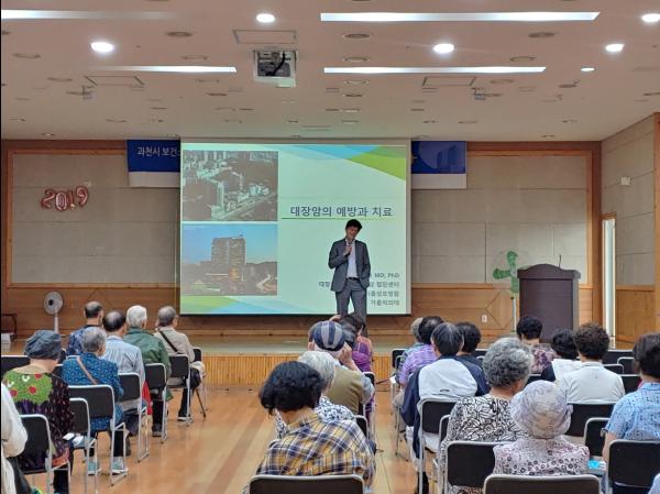 과천시보건소는 지난 27일 과천시노인복지관에서 주민 및 어르신 150여명을 대상으로 ‘대장암의 예방과 관리’를 주제로 서울성모병원 대장항문외과 이인규교수의 강의를 실시했다.