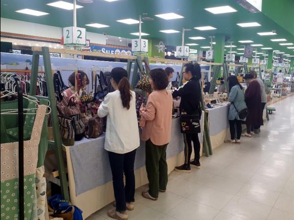 이번 행사에서는 사회적경제기업들이 준비한 가방과 스카프, 인형, 악세사리 등의 제품으로 판매대를 화려하게 수놓으며 농협하나로마트를 찾는 주부들에게 쇼핑의 색다른 경험을 선사하고 있다.