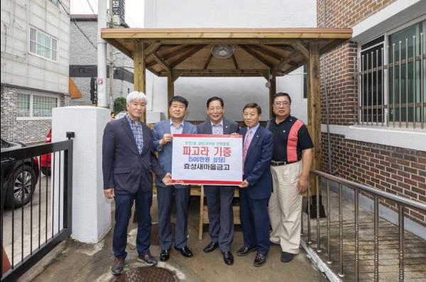 전현기 효성새마을금고 이사장은 ‘이번에 기탁한 파고라 시설에서 관내 어르신들이 무더운 여름을 쾌적하게 지낼 수 있기를 바란다’고 뜻을 밝히며, ‘앞으로도 어르신들의 복지 향상을 위해 사회 환원사업을 지속적으로 추진 하겠다’고 약속했다.