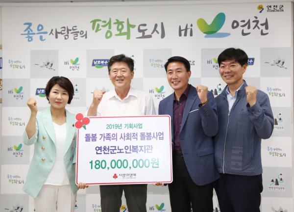 이와 관련, 26일 연천군청 군수실에서 김광철 연천군수, 김경희 경기북부본부장, 김학석 연천군노인복지관장, 김영석 사회복지과장 등이 참석해 신규 기획사업의 성금 전달식을 가졌다.