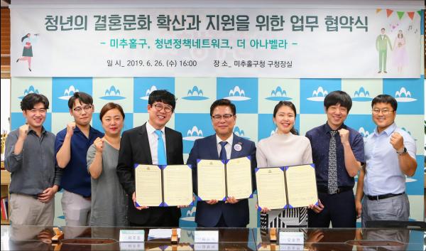 구는 지난 26일 웨딩업체 ‘더 아나벨라’와 미추홀구 청년정책네트워크와 3자협약을 체결했다.