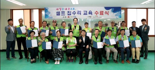 홍인성 구청장은“지역주민 분들이 집수리 전문가가 된 것을 축하드린다”며, “교육받은 기술을 자가 주택 또는 생업에 활용은 물론 저소득층 주택 집수리 봉사에 힘써 달라”고 말했다.