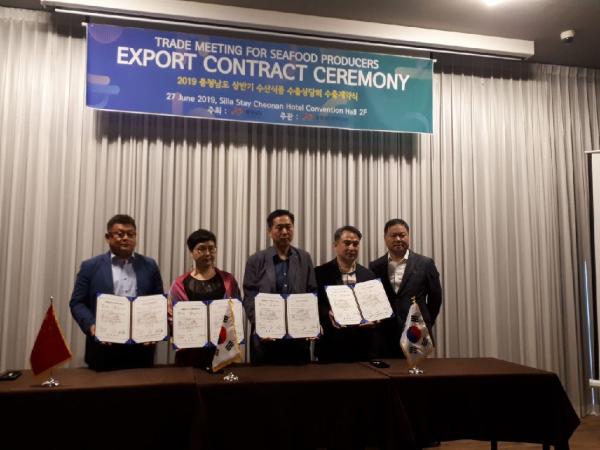 충남도는 27일 천안 신라스테이홀텔에서 ‘2019년 상반기 수산식품 수출 상담회’을 열고 1000만 달러 규모의 수출 계약 성과를 거뒀다고 밝혔다.