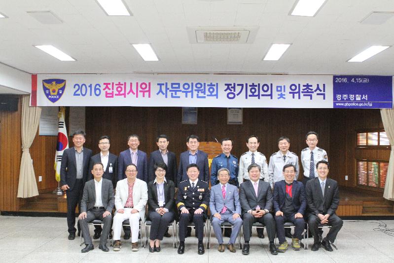 경찰서장과 각 과장 8명, 집회시위자문위원 7명이 참석하여 집회시위자문위원회 정기 회의를 개최 하였다. 아울러 이 자리에서 신규회원 1명을 위촉 하였다.