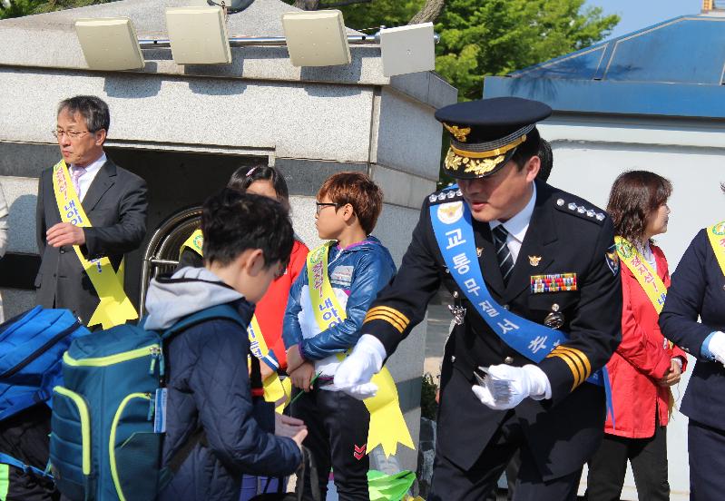 경주경찰서 정흥남 서장은 “최근 어른들의 잘못으로 인한 어린이교통사고가 발생하고 있습니다.”며, “올해 꼭 관내 43개 초등학교를 방문하여 우리 아이들의 안전한 통학로가 만들어질 수 있도록 노력하겠습니다.”고 말했다.