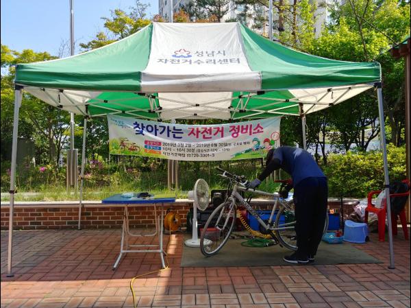 고정식 자전거 정비소는 분당구 야탑동 만나교회 뒤 탄천 공터에 설치해 월~토요일 오전 10시부터 오후 5시까지 문을 연다.