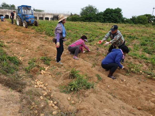파주시 파주읍 주민자치위원회 30여명이 지난 26일 3월부터 4개월 간 정성들여 가꾼 감자를 수확했다.
