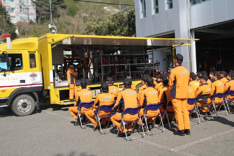 거제소방서(서장 김용식)가 지난 18일(월)부터 1주일간 전 직원의 소방차량 조작능력 향상을 위하여 소방교육훈련차(GVT)를 이용한 순회교육을 실시하고 있다.